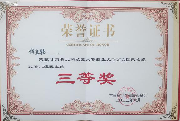 此次竞赛由甘肃省卫健委主办,甘肃省妇幼保健院承办,省上各大医院及全省各市州20支代表队参加,是对全省儿科医务人员儿童急救技能的一次全面测试。州人民医院新生儿科参赛队员凭借扎实的理论功底和娴熟的操作技能,通过理论考试、七站临床技能操作两个阶段的紧张角逐,最终在众多参赛队伍中脱颖而出,斩获甘肃省儿科技能大赛新生儿OSCA临床技能比赛“团体二等奖”,医生马志方荣获一线医生“二等奖”,医生何立乾荣获二线医生“三等奖”,副主任崔培聪荣获“优秀指导老师奖”。成绩的取得充分展示了州人民医院医务工作者扎实的理论功底、熟练的操作技能和优良的团队精神,展现了州医人良好的职业风貌,出色地表现受到了评委专家一致好评。