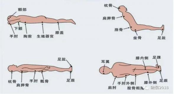 不同体位压力性损伤好发部位如下图所示,可重点观察: