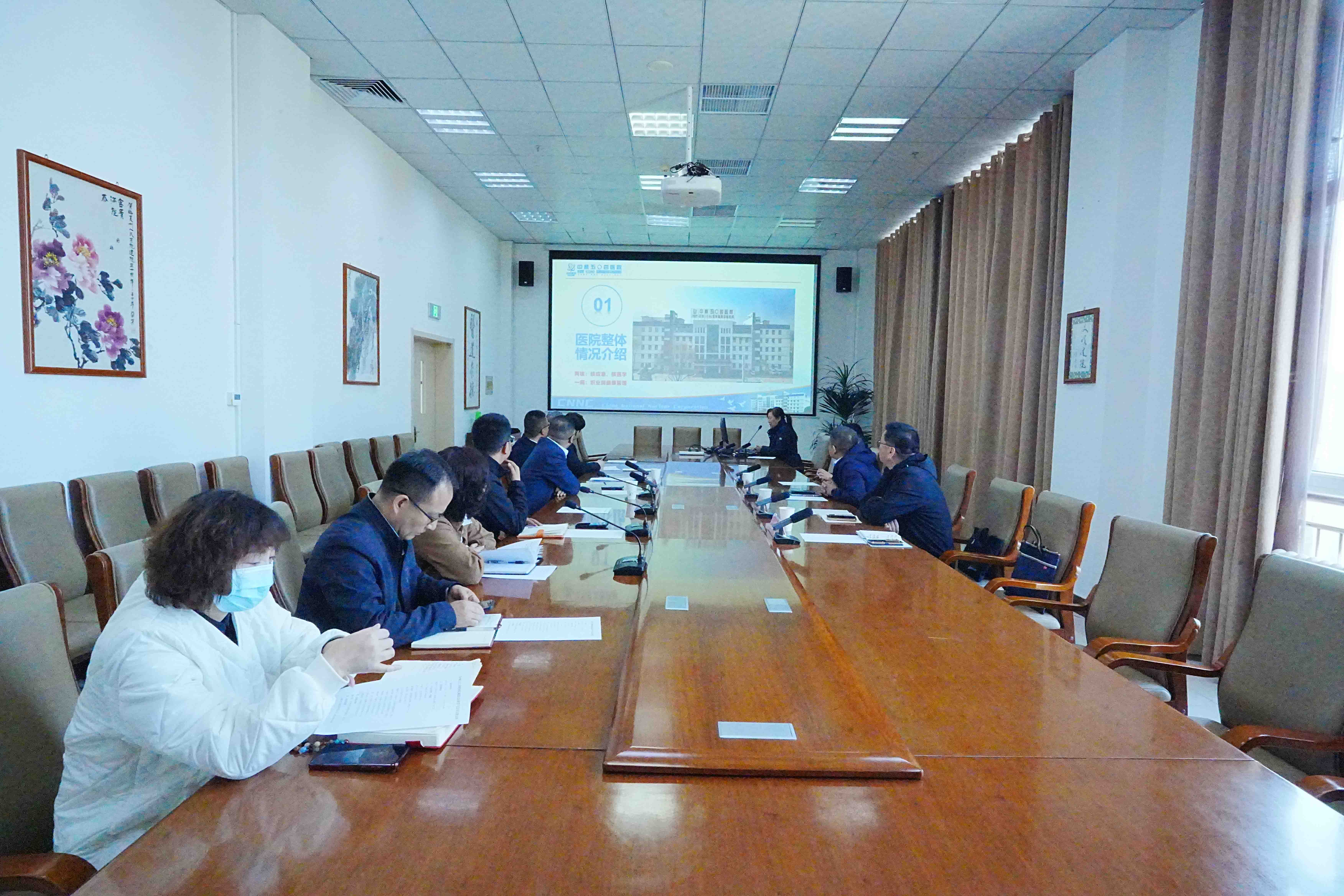 3月31日上午,中核五〇四医院党委书记肖晨光一行4人到临夏州人民医院,就肿瘤一体化治疗、核医学科建设、学科管理及合作发展等主题进行考察交流。院党委副书记、院长魏学全,党委委员、副院长杨虎勇及相关科室负责人参会。